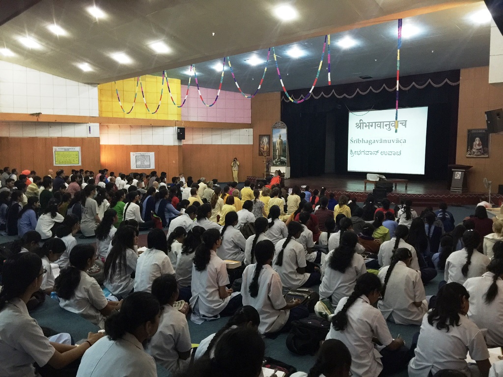 On the auspicious evening of Vasant Panchami - the Hindu festival celebrating the coming of Spring - His Holiness Vishwaguruji gave a satsang at the Prashanti Kutiram campus of Swami Vivekananda Yoga Anusandhana Samsthana University (SVYASA).