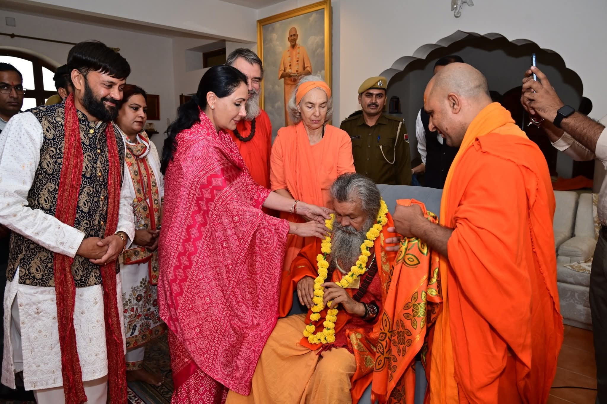 Mahamandaleshwar Swami Gyaneshwar Puriji, Mahamandaleshwar Swami Phool Puriji, Acharya Swami Rajendra Puriji, Swami Yogesh Puriji, Shri Umesh Ojhaji, Kapil Agarwalji and many national and international devotees welcomed her warmly.