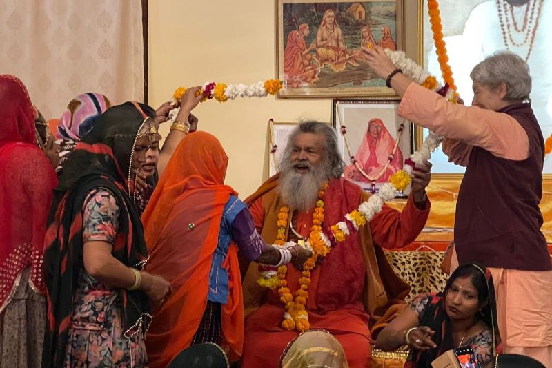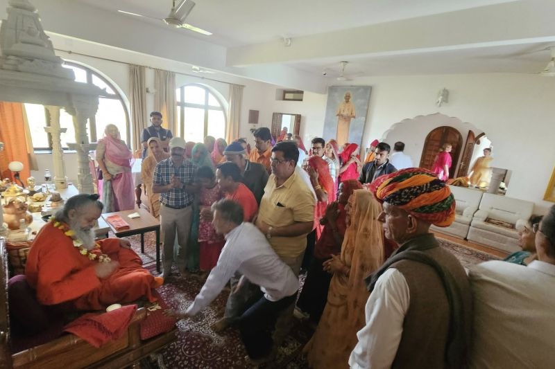 27 January 2025 – Vishwaguruji is again in Jadan Ashram, where he was warmly welcomed by devotees from Sojat, a nearby village. Gurudev's visit is always a special blessing. Vishwaguruji gave darshan to a family of bhaktas who also live near the ashram in Marwar Junction village.
