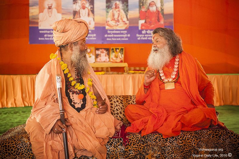 His Holiness Yogi Adityanath, Peethadishwar (successor) of Nath Parampara, and Mahant (head priest) of the Gorakhnath Mutt (Hindu temple in Gorakhpur) visits Vishwaguruji in his camp.