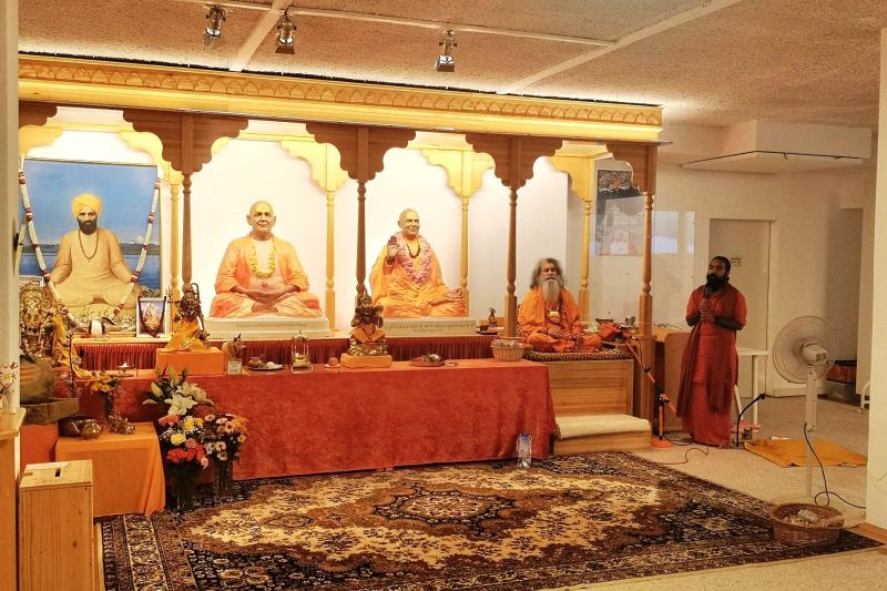 On the day after Gurupurnima celebrations in OM Ashram, Vishwaguruji went to Sri Sri Madhav Krishna Ashram in the town of Bassi, Rajasthan, to inaugurate new murtis (statues) of Sri Devpuriji and Swami Krishnanandji, disciple of Sri Swami Madhavanandaji – Holy Guruji.