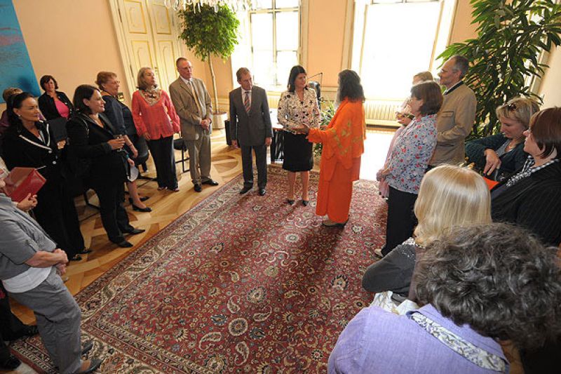 On 15 May 2009, the Federal Province and the City of Salzburg, Austria, bestowed extraordinary honours and acknowledgement upon His Holiness Swamiji. In the beautiful historical Mirabell Castle, residence of the Communal and the Provincial Government of Salzburg, H. H. Swamiji and a group of his followers from Austria were welcomed cordially by Mrs. Burgstaller, Governor of the Federal Province and Mr. Schaden, Mayor of the City of Salzburg.