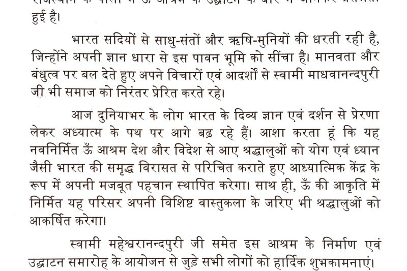 PM Narendra Modiji's message for the Grand Opening of OM Ashram