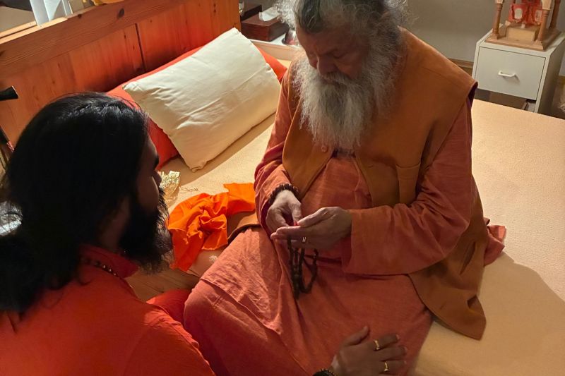 On the auspicious day of 30 May 2025, a deeply significant spiritual event took place in Vienna, Austria, when Vishwaguru Mahamandaleshwar Paramhans Sri Swami Maheshwaranandaji, Vishwaguruji, entrusted his personal rudraksha mala to his successor, Swami Avatar Puriji.